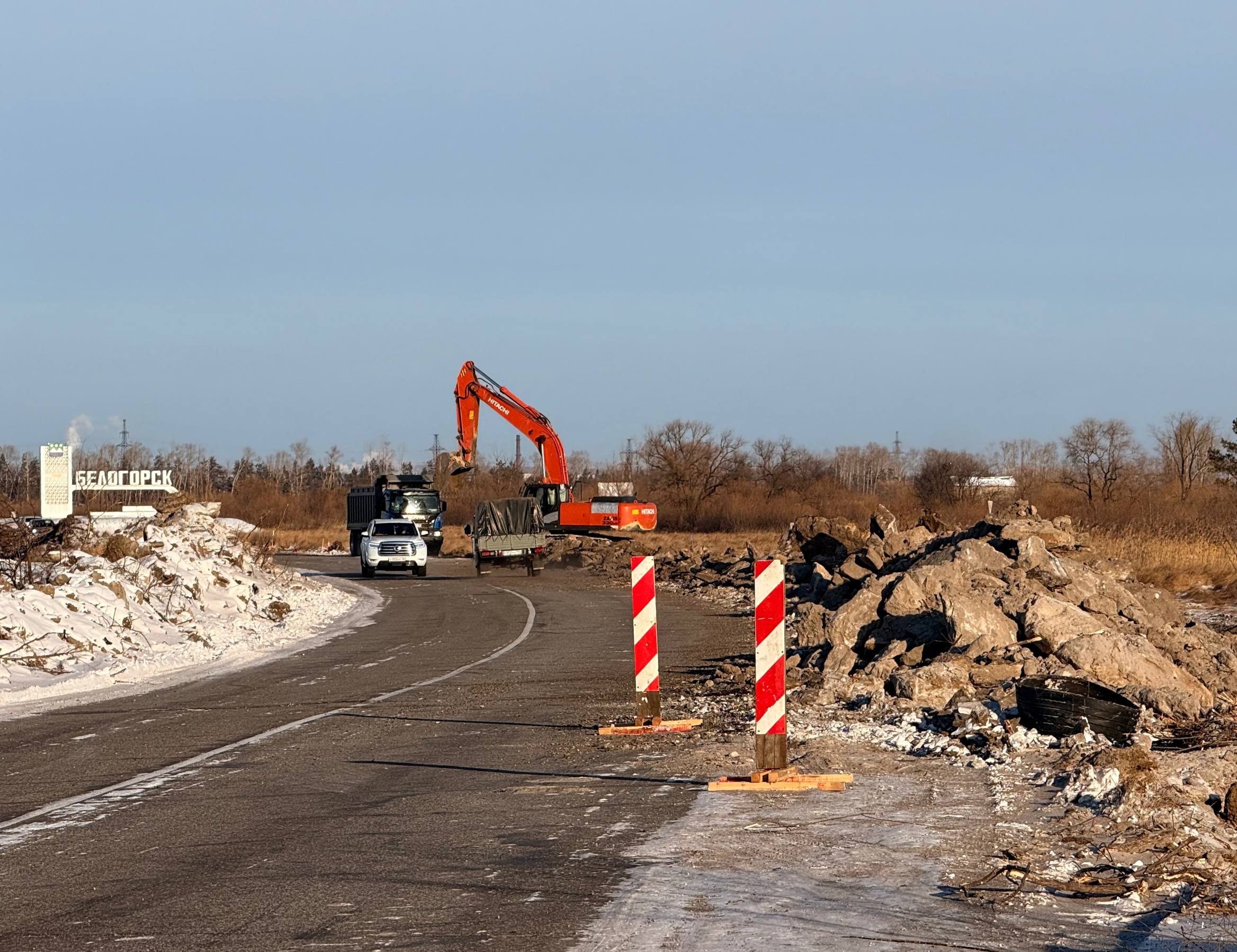 В Белогорске идёт первый этап строительства дорожного участка на въезде в город в районе завода «Содружество». Тяжёлая техника приступила к работе на участке от поворота на завод до стелы.