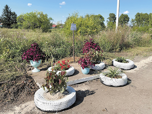 - Знаю, что не дело, но это временное решение, потому что сейчас сложно обеспечить цветам подходящую почву на такой площади, - заметила Надежда Ивановна. - С мужем купили уже спандекс, песка заказали, земли. В следующем году шин не будет. Когда земля отдохнёт от мусорных отходов, постараюсь устроить настоящий цветник.