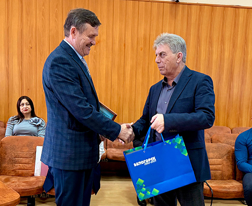 - Мне было приятно работать с Леонидом Михайловичем. Надеюсь, и ему. От себя, Леонид Михайлович, благодарственное письмо, от города - скромный подарок…