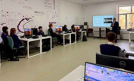 В дрон-классе школы N4 Рашид Каримов провёл профориентационную встречу, рассказав ученикам 8-11 классов о профессии авиадиспетчера.