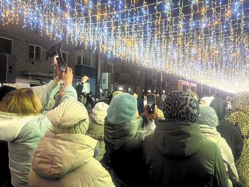 Сотни людей достали телефоны и приготовились снимать. Ощутимый холод был на мгновение забыт: и дети, и взрослые, пританцовывая, хором вместе с ведущим скандировали обратный отсчёт: «Три, два, один!» И вот в одну секунду зажглись десятки тысяч огней.