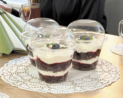 - Свой выбор остановили на приготовлении трайфла, - рассказала о десерте Валентина Паветкина. - Его собирают и подают в высоких стаканах или креманках с прозрачными стенками, чтобы слои были хорошо видны. У нас трайфл с шоколадным бисквитом, ягодной начинкой и взбитыми сливками. Большой плюс ещё и в том, что при такой эффектной подаче порционное пирожное не требует большого количества времени на приготовление. С учётом того, что ежедневно мы только бесплатным питанием обеспечиваем более 600 школьников, важно правильно распределить рабочее время, чтобы успеть выполнить все поставленные задачи в течение рабочего дня.