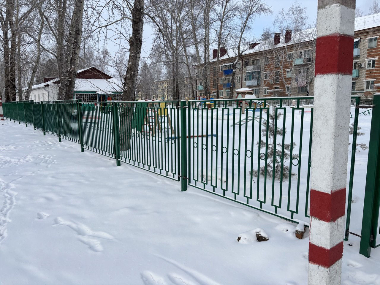 Новое ограждение и оборудование для детского игрового комплекса появилось в детском саду №113 «Автобата» в Белогорске. Помощь муниципалитета соцучреждению, находящемуся в воинской части, организована по поручению главы Белогорска Станислава Мелюкова.