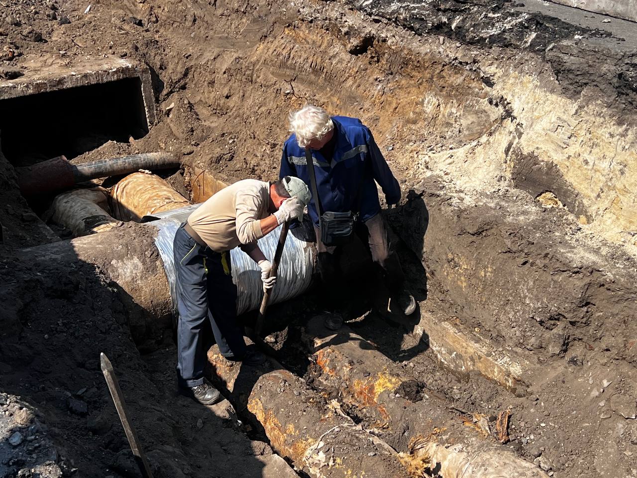 Рано утром 19 августа в Белогорске начались работы по ремонту тепловой сети расположенной на пересечении ул. Ленина - ул. Скорикова. Как рассказал начальник котельной «Районная» Виктор Спирин, поломку обнаружили, когда проводили гидравлические испытания сетей. Сейчас производится замена магистрального трубопровода диаметром 40 см. Предстоит заменить участок примерно 4-5 метров.