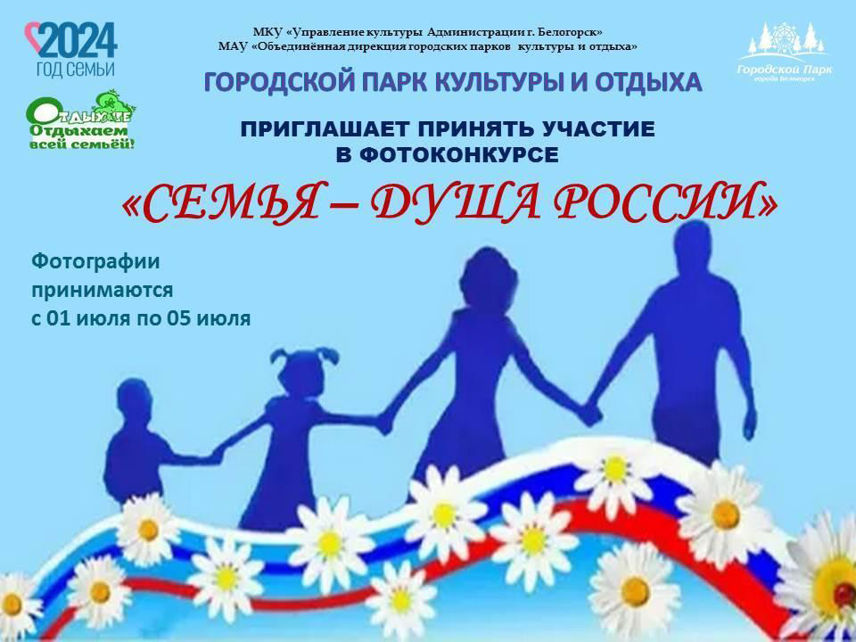 7 июля ко Дню семьи, любви и верности в белогорском горпарке состоится концертно-развлекательная программа «Любовью дорожить умейте». Мероприятие организовано в рамках проекта «Отдыхайте» и в рамках Года семьи, который объявлен в 2024 году Указом президента Владимира Путина.