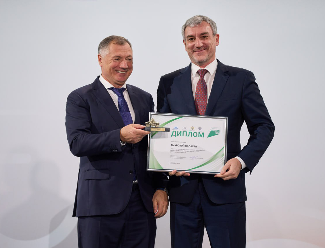 Амурская область во второй раз получила «Золотой каток» за успешную реализацию президентского национального проекта «Инфраструктура для жизни». Вице-премьер России Марат Хуснуллин, вручая награду губернатору Василию Орлову, высоко оценил масштабную работу по строительству дорожных объектов, которая ведется в регионе.