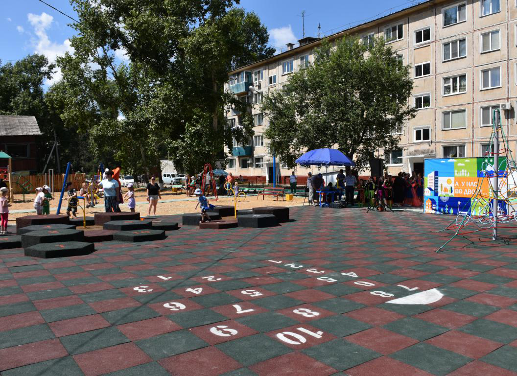Работы по благоустройству первой дворовой территории по программе «1000 дворов» завершились в Белогорске. В таком объеме работ она стала первой на Дальнем Востоке. Двор по улице Южная предназначен для двух многоквартирных домов: 23 и 27. Площадь благоустроенного - свыше 1,6 тысяч кв. метров. На открытии объекта побывал губернатор региона Василий Орлов.