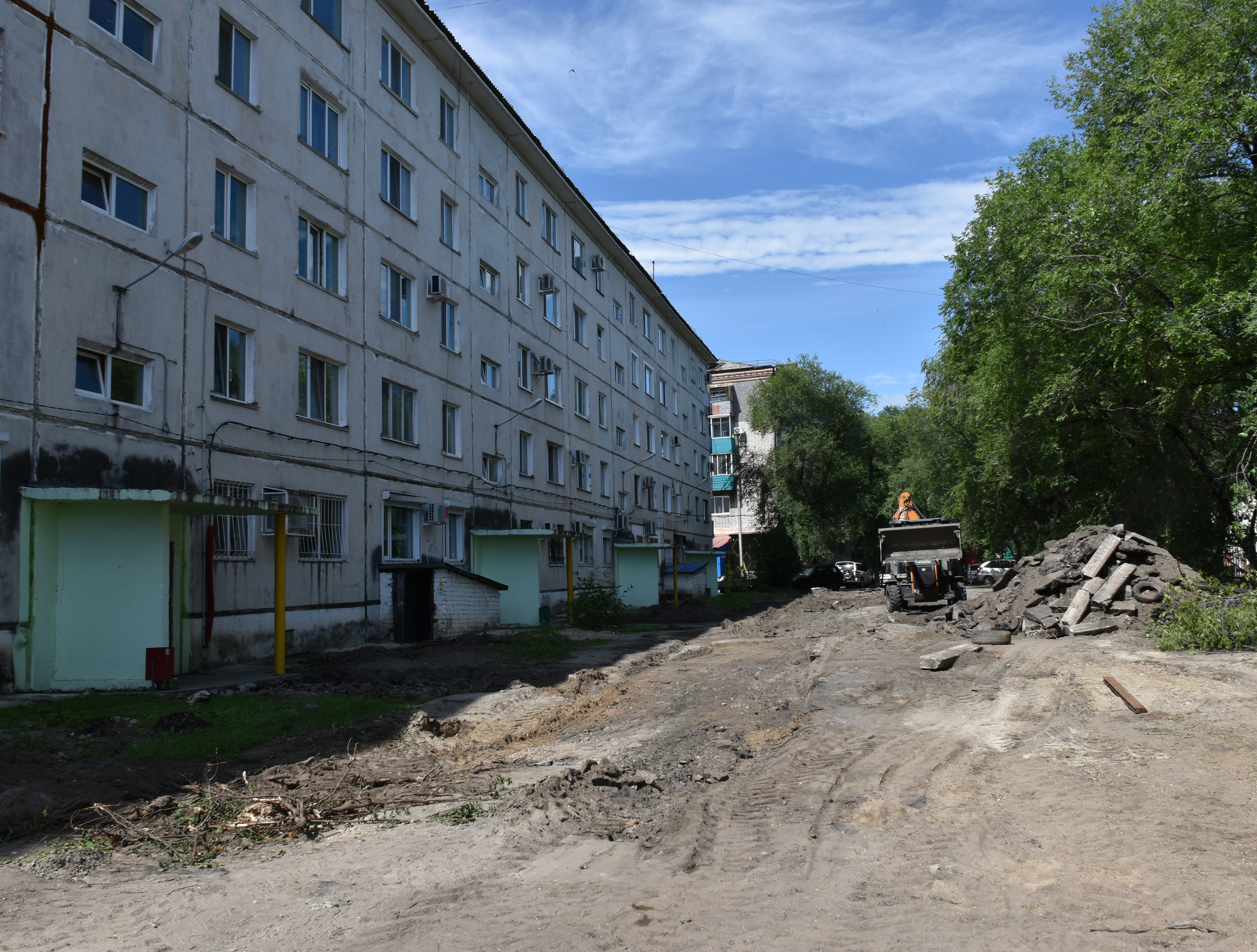 В Белогорске начались мероприятия по благоустройству третьей дворовой территории в 2022 году в рамках реализации регионального проекта «Формирование комфортной городской среды». 20 июля подрядная организация приступила к демонтажу старого покрытия дворового проезда.