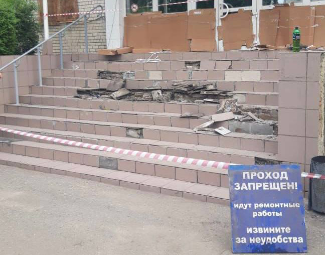 В Белогорске приводят в порядок крыльцо здания Военного комиссариата. Глава города Станислав Мелюков в своем