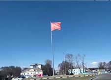 Увеличенную копию штурмового флага 150-й ордена Кутузова II степени Идрицкой стрелковой дивизии водрузили на 35-метровую высоту флагштока 1 мая.