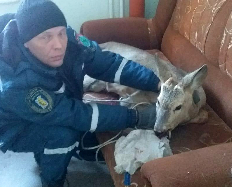 В родильном отделении городской больницы Белогорска утром в понедельник, 21 марта, обнаружили косулю. Животное запрыгнуло в кабинет через окно, разбив стекло.