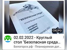 Участником круглого стола в Белогорске «Безопасная среда: отлов бродячих животных», который начнется меньше, чем через час, может стать каждый желающий. По поручению главы города Станислава Мелюкова онлайн-трансляция будет обеспечена в YouTube-канале белогорск.рф, а также в инстаграм-аккаунте белогорск.ру.