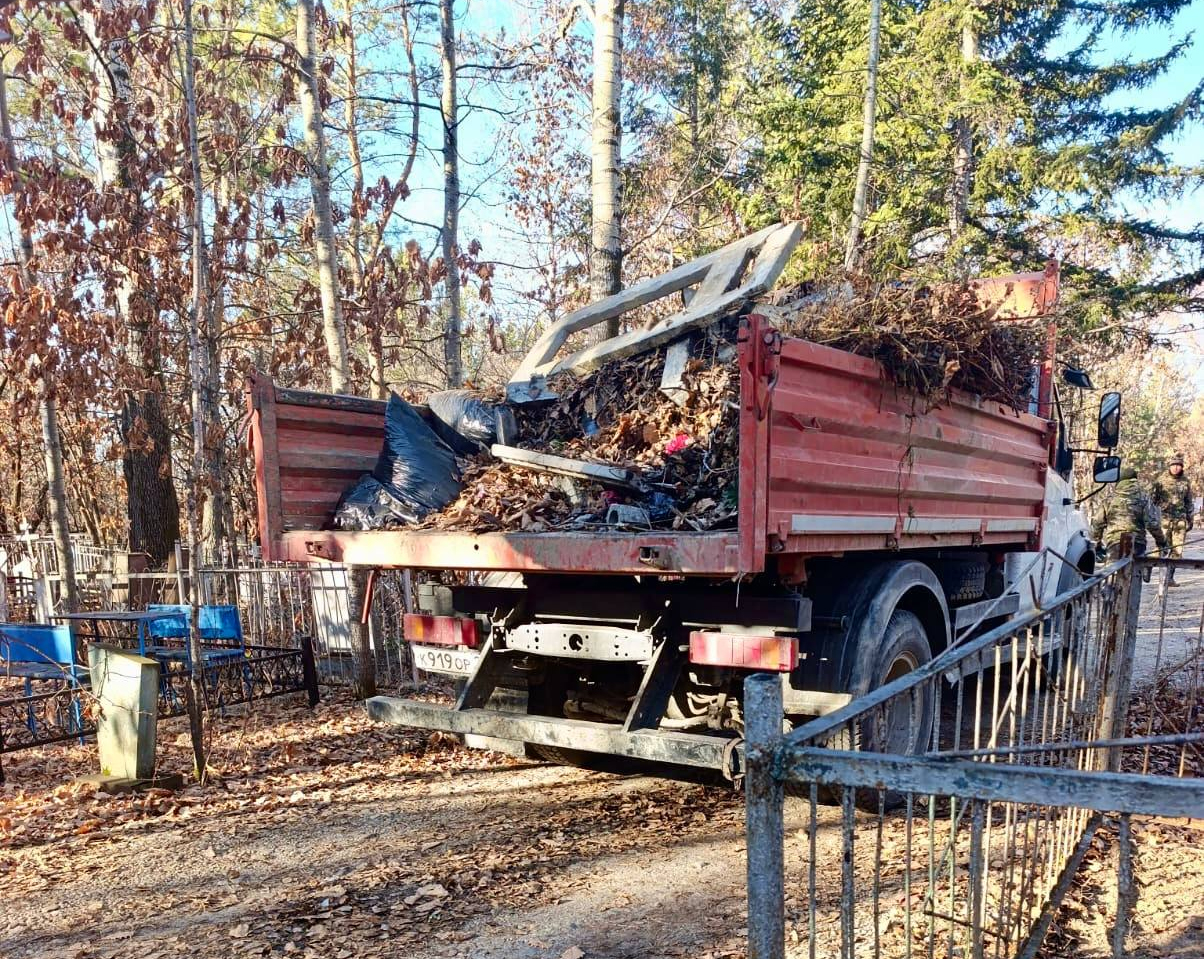 Муниципальное предприятие «Ритуальные услуги» приводит в порядок никольское кладбище. Территории захоронений приводят в порядок в рамках осенней уборки.