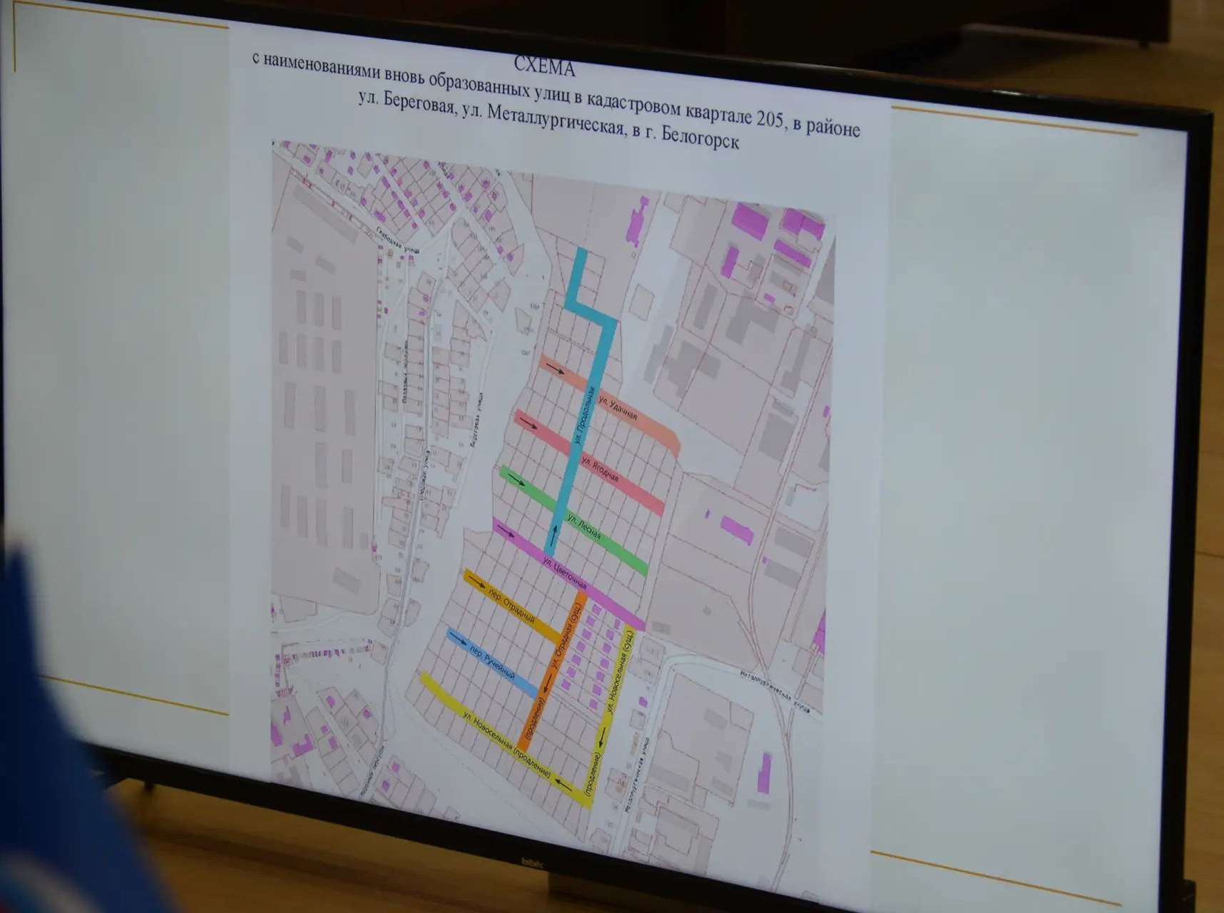 В Белогорске появились новые улицы. Решение принято на заседании горсовета 26 февраля. Как пояснила начальник отдела территориального планирования и градостроительной деятельности Светлана Тярина, в кадастровом квартале 205 (в районе улиц Береговая и Металлургическая) в результате межевания территории образованы новые земельные участки для индивидуального жилищного строительства, а также для размещения магазина. Чтобы обеспечить присвоение адресов этим участкам и будущим объектам капитального строительства, потребовалось дать названия вновь образованным элементам улично-дорожной сети. В итоге появилось семь новых улиц и переулков, а также были продлены существующие участки улиц Отрадная и Новосельная.